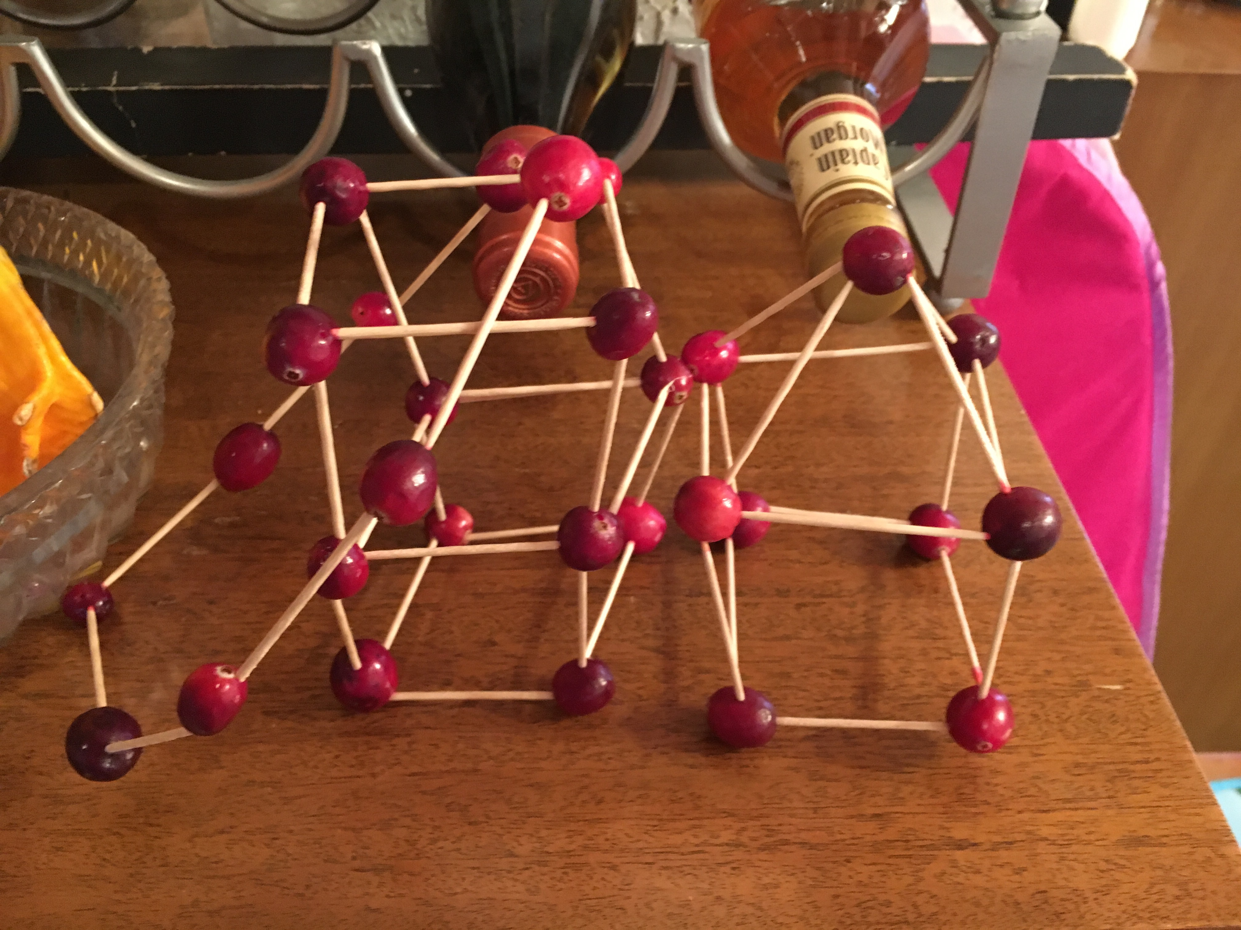 Oh, and cranberries + toothpicks = unlimited structures. Excuse the liquor background.