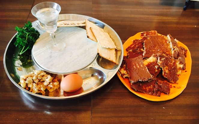 We tried! Seder plate isn’t complete in this pic, but at least the chocolate matzoh crack was delish.