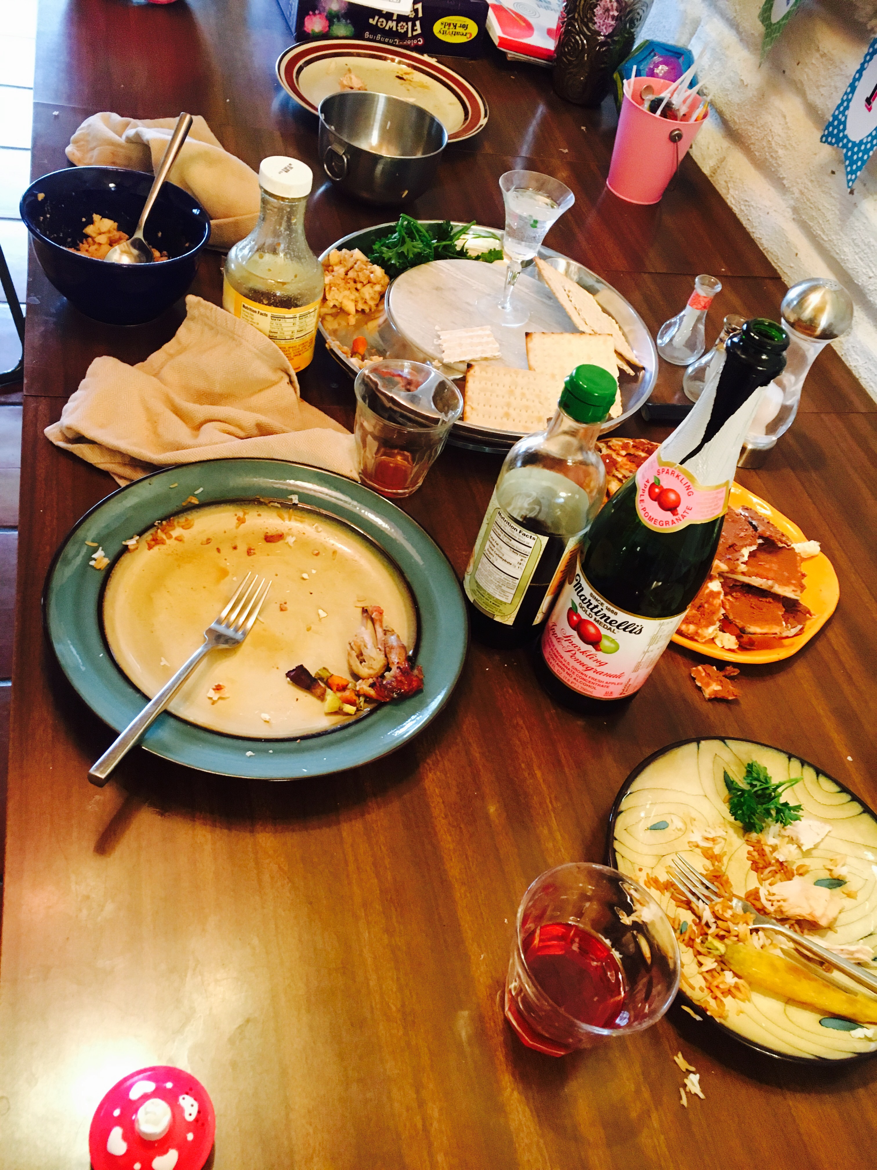 I’m currently sitting in K’s crib — alongside a red, puffy and screeching baby — taking a few bites of the Passover supper that R and Mr. T just delivered to me. Poor K is utterly and completely inconsolable. Our impromptu Pesach (Passover) Seder generated a flailing baby throwing food and water all over our Seder plate (and everything else) and a mommy leaving the table with said baby in the middle of singing Dayenu.